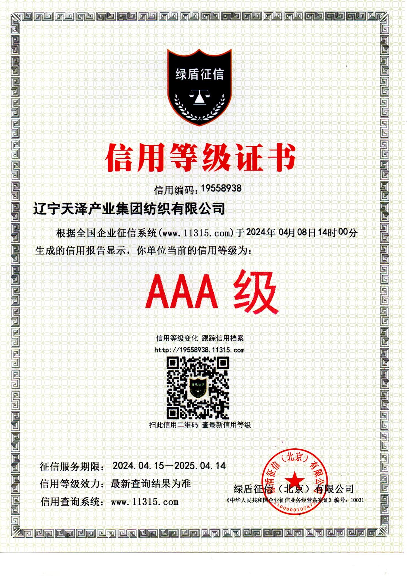 2024年企業(yè)信用等級證書