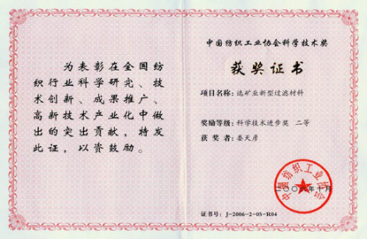 中國紡織工業(yè)協(xié)會科學(xué)技術(shù)進(jìn)步二等獎