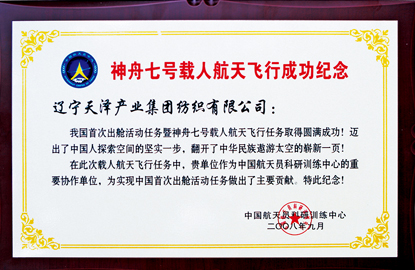 神七榮譽證書