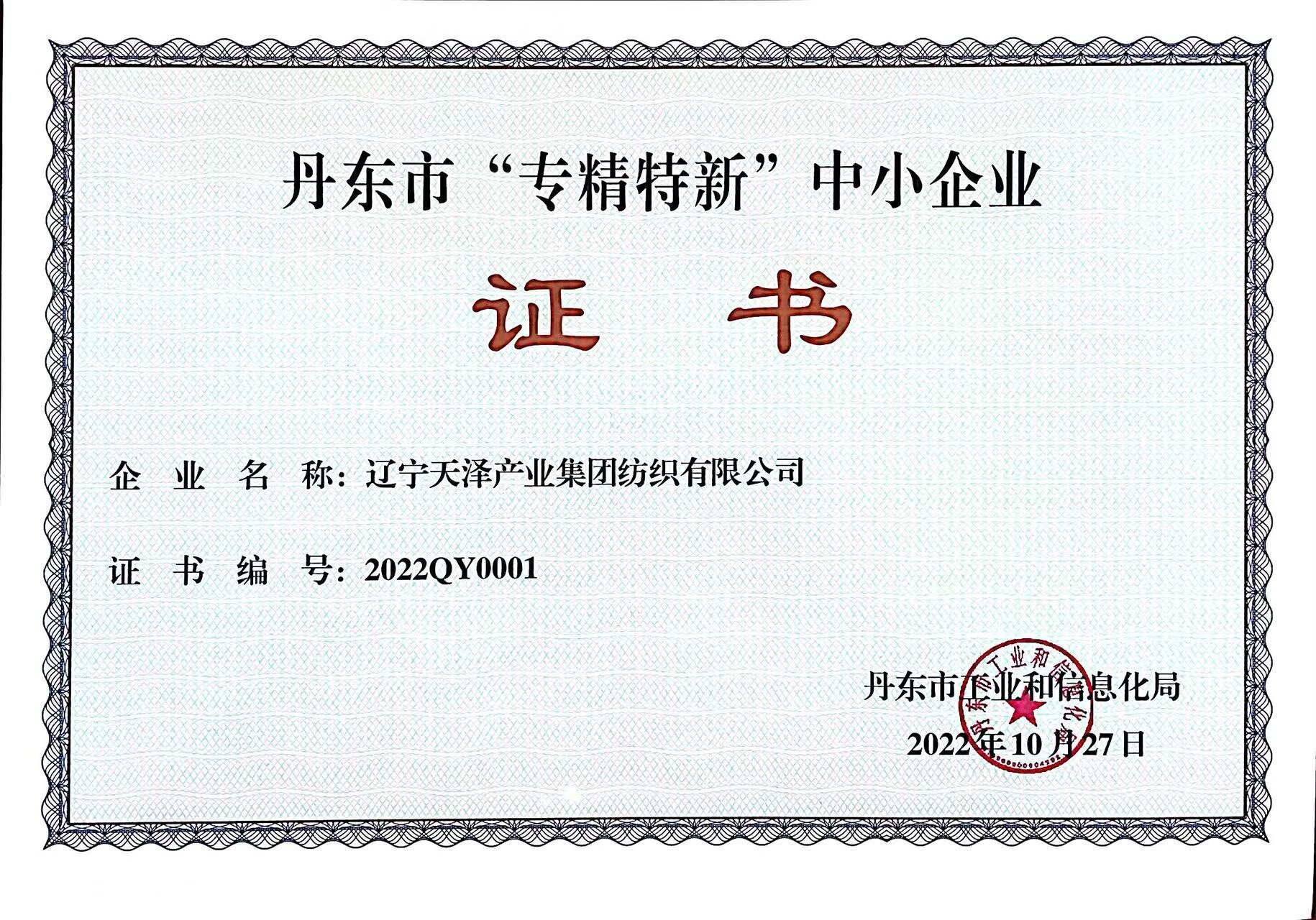 2022年“專精特新”證書